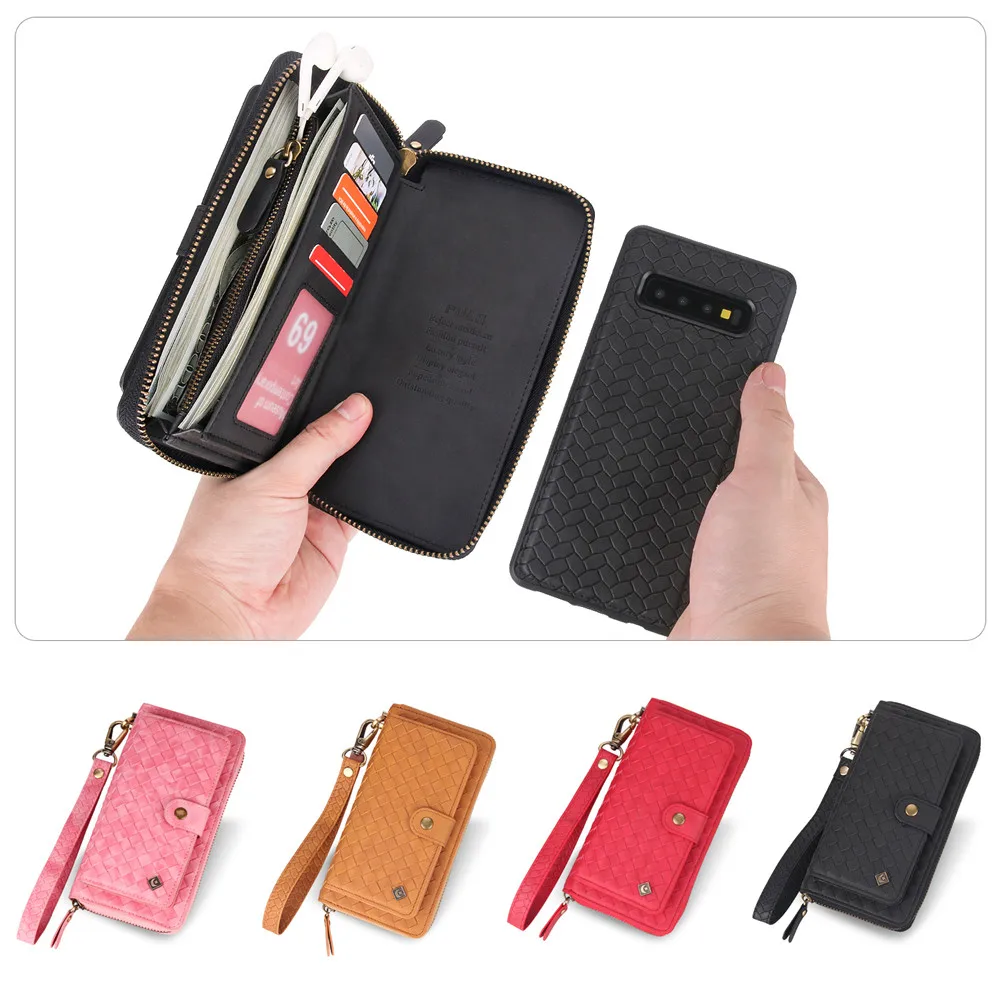 Excellent - Чехол-Кошелек из искусственной кожи на молнии с большой емкостью 360 градусов защитная оболочка Магнитная задняя крышка для Galaxy S10 S10e S9 S8 Note9 ...